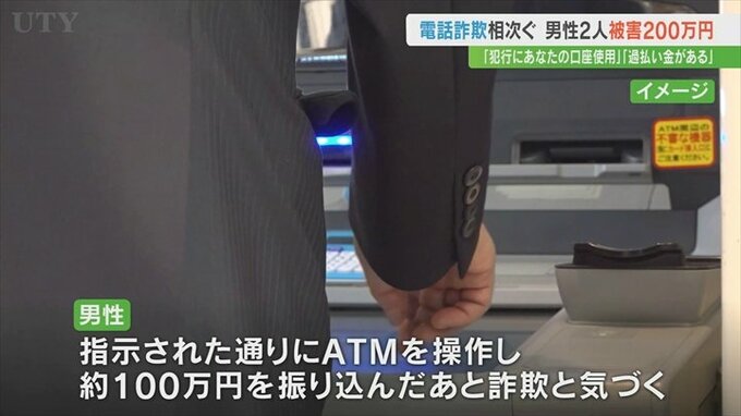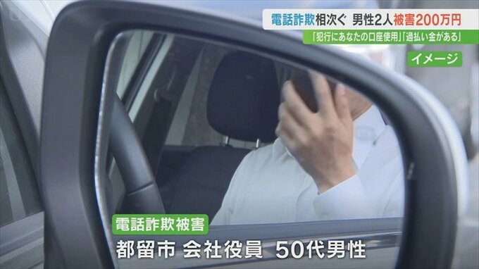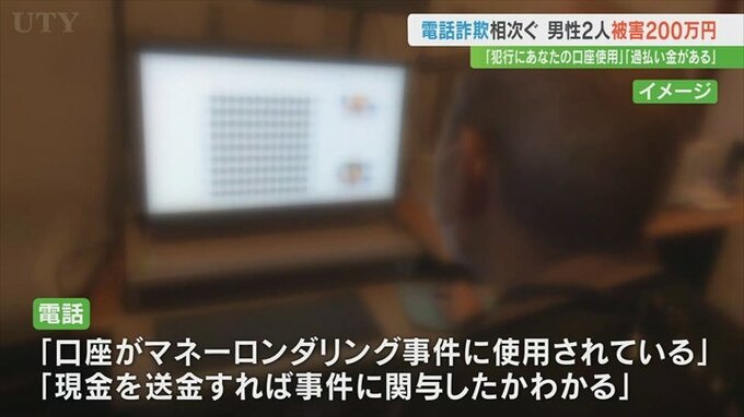 マネーロンダリング事件の犯行にあなたの口座が使われているなどというウソの電話を信じて都留市の会社役員ら男性2人があわせて約200万円をだまし取られました。