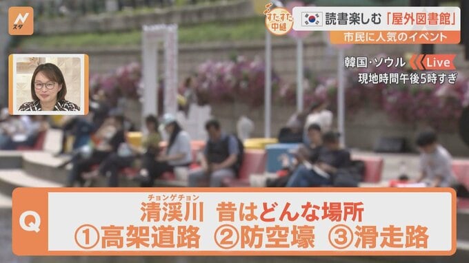 「歩いて発見、すたすた中継」は、韓国・ソウルの真ん中で読書を楽しむイベント「屋外図書館」の話題を早瀬川賢也記者がお伝えします。