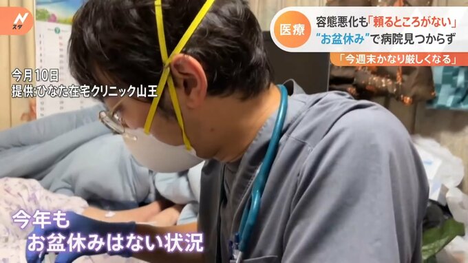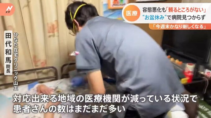 こちらは、訪問診療を行っている、ひなた在宅クリニック山王の田代和馬院長。今年もお盆休みは全くない状況です。