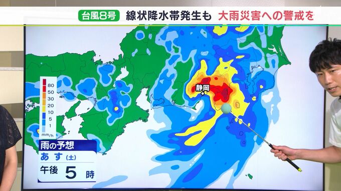 <田中健太郎気象予報士>今回の台風の特徴はコンパクトといことです。近づくと天気が急速に悪化する恐れがあります。8月13日の日中に静岡県内に最接近し、上陸する恐れもあります。雨の予想を12日夜7時から見ると…