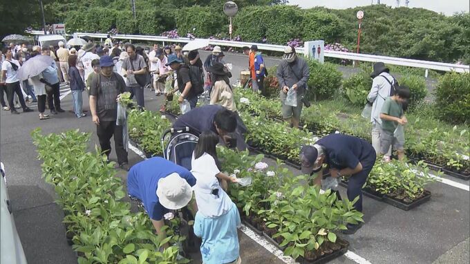 沿道に約7万本のアジサイが咲くことから「あじさいライン」とも呼ばれている三ヶ根山スカイライン。15日は山頂でイベントが開かれ、来場者にはアジサイの苗が無料で配られました。