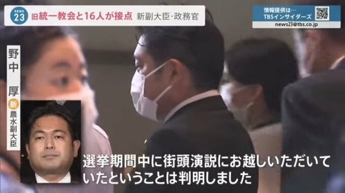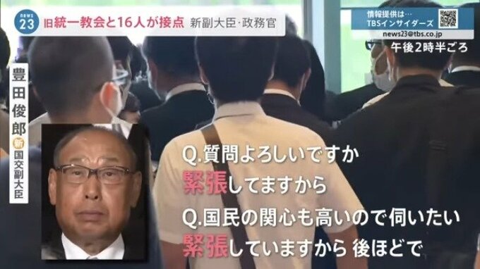一方、新しい大臣のうち、すでに7人が旧統一教会と何らかの接点があったことが判明していますが、8月13日に任命された副大臣と政務官の中にも関わりがある議員が続々と判明しました。