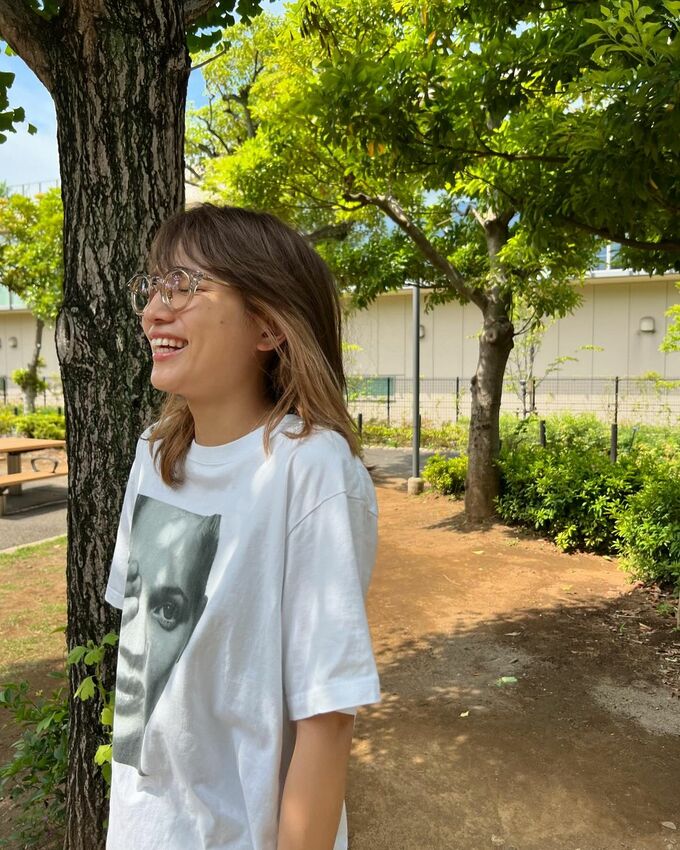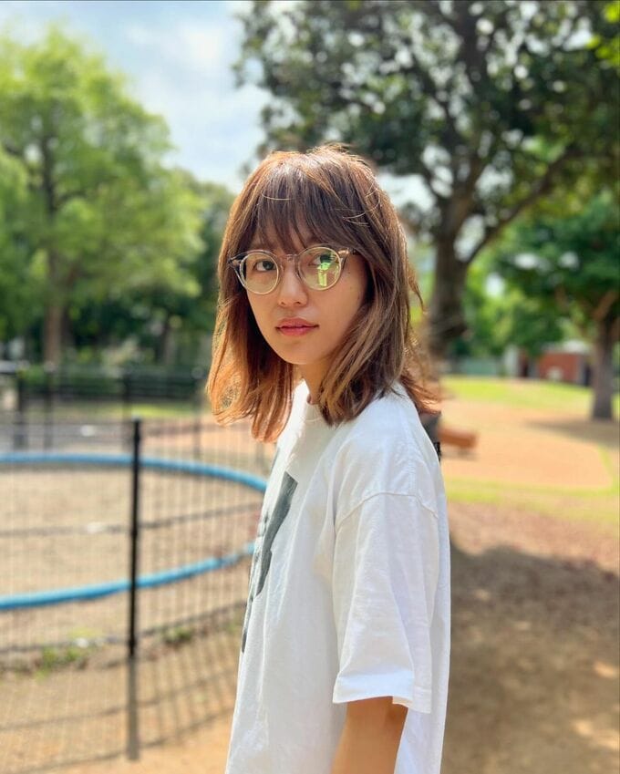 川口さんは公園で撮影された4枚の写真をアップ。メガネをかけTシャツ姿のリラックスした様子のオフショットで、髪は以前よりやや短くなっており、インナーカラーも入っています。