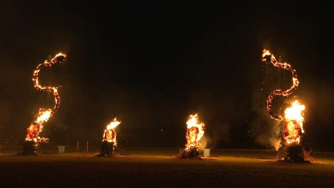 「奥津軽虫と火まつり」が15日夜、青森県五所川原市で開かれ、「五穀豊穣」や「悪疫退散」などを祈って高さ20メートルの巨大な虫人形に火が放たれました。五所川原市の岩木川河川敷で15日に行われた祭りでは五所川…