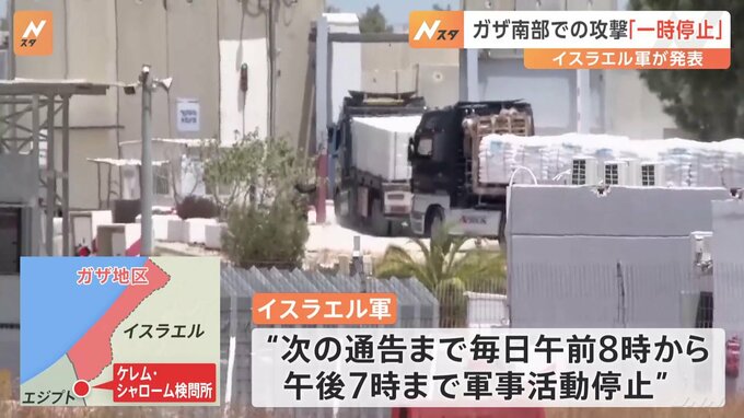 イスラエル軍が、ガザ南部での攻撃を「一時停止」すると発表しました。イスラエル軍は16日、パレスチナ自治区ガザ南部の一部地域でガザへの人道支援物資の搬入を増やすために攻撃を一時停止すると発表しました。ケ…
