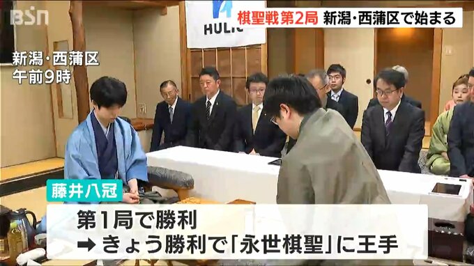 将棋の棋聖戦 五番勝負の第2局が新潟市西蒲区の旅館で行われています。藤井八冠が勝利すれば永世棋聖に王手となります。