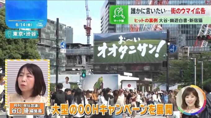 例えば、最近東京・渋谷に現れた、米大リーグ・ドジャース、大谷翔平選手の大型看板。商品名にひっかけた「お~いオオタニサン!」のフレーズや、白Tシャツの大谷選手が茶畑にたたずむ巨大看板に思わず足をとめて見つめる人が続出しました。