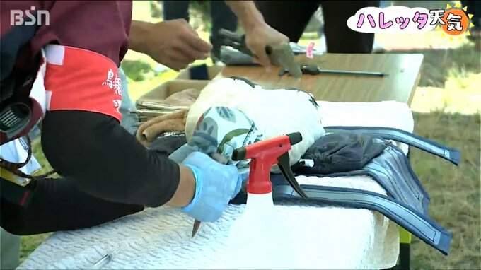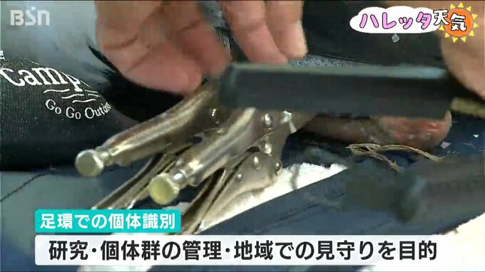 この日はひなを捕獲し体重や体長などを計測。足環を装着する作業が行われました。