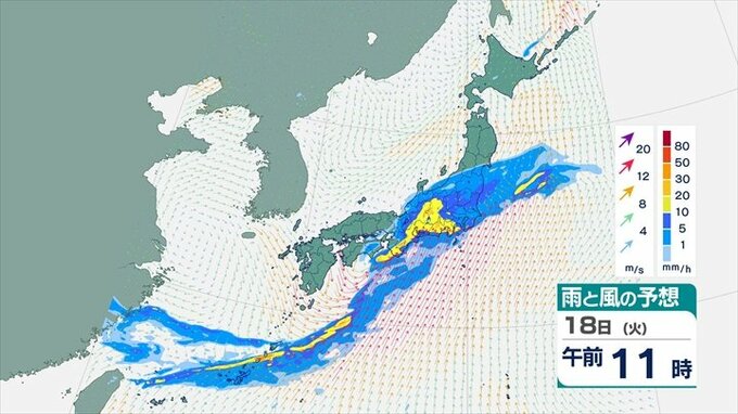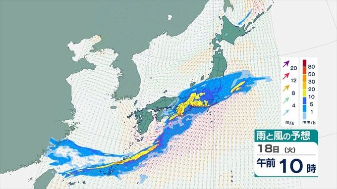 大気が非常に不安定 あす関東甲信地方は警報級の大雨の可能性も 雨・風のシミュレーション