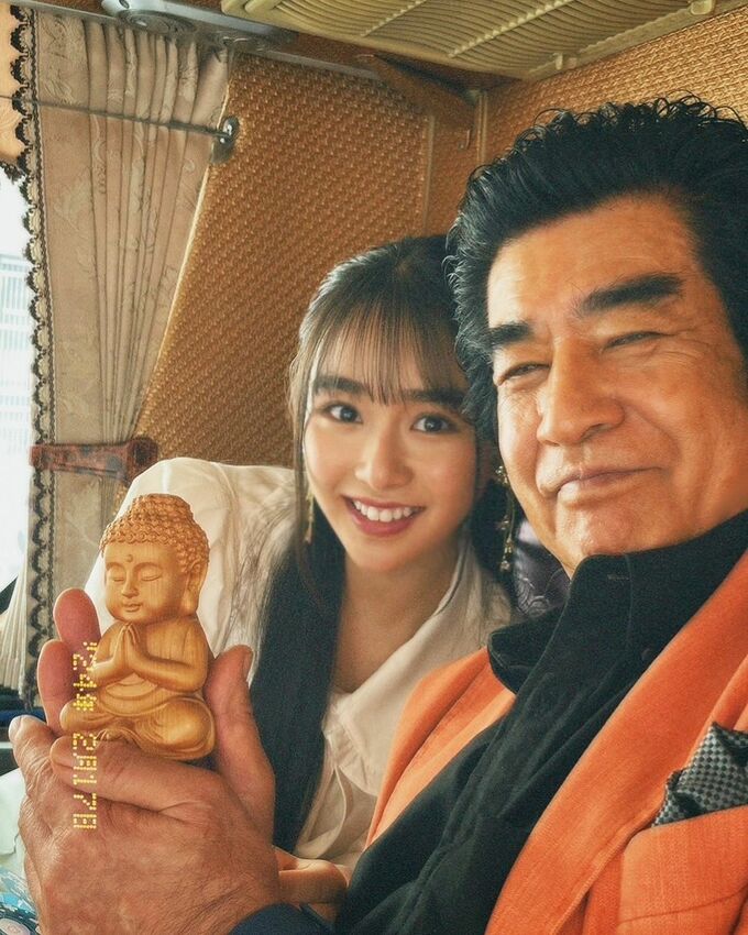藤岡舞衣さんは「お父さんいつもありがとう 大好きです。!!!」と、仏像を手に持った、父・藤岡弘、さんと一緒に微笑む写真を投稿。