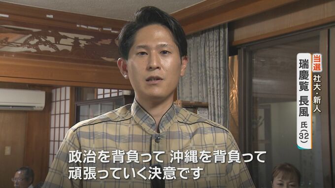 「天から一緒に、選挙運動をしてくれた祖父の瑞慶覧長方、父の瑞慶覧長敏が繋いできた思いにも心から感謝して、政治を背負って、沖縄を背負って、頑張っていく決意です」