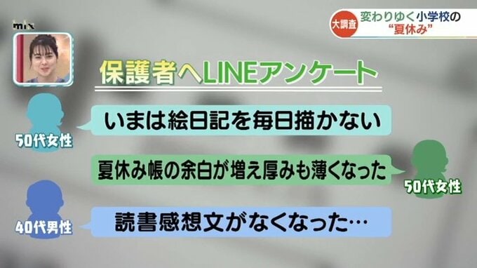 保護者へのラインアンケートでは「いまは絵日記を毎日書かない」「夏休み帳の余白が増え、厚みも薄くなった」「読書感想文がなくなった」など、量が減っているという意見も見られましたが…、大内南小学校はけっこう、しっかりありました。