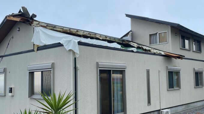 住宅の屋根がはがれた人は「6時から6時半ごろにゴーという音がして、リビングの窓のシャッターを閉めたところ、内側へ圧がかかった感じがした。直後にバリバリと音がして、屋根が剥がれた」と話しています。