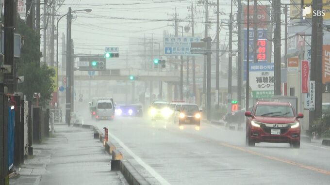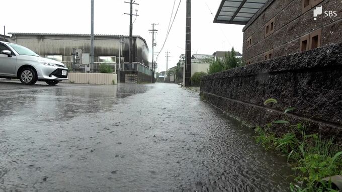 島田市では雨の影響で視界が悪くなり、住宅街ではいたるところに水たまりができていました。