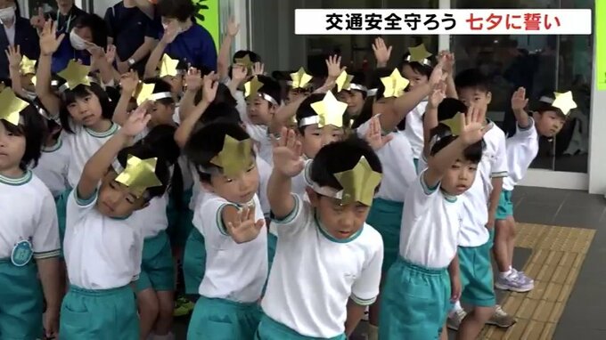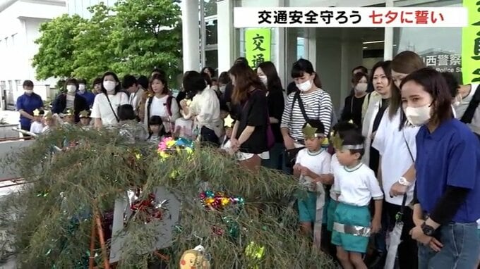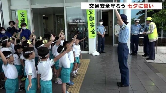七夕を前に、18日、富山市では、園児たちが竹に短冊を飾りつけ「事故にあいませんように」と願いました。