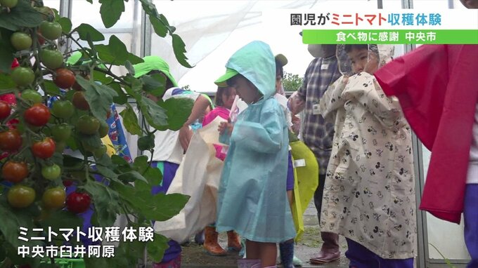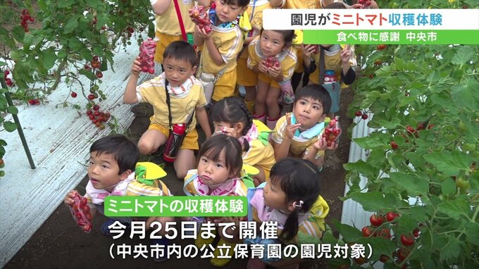 ミニトマトの収穫体験は市内の公立保育園の園児を対象に6月25日まで行われます。