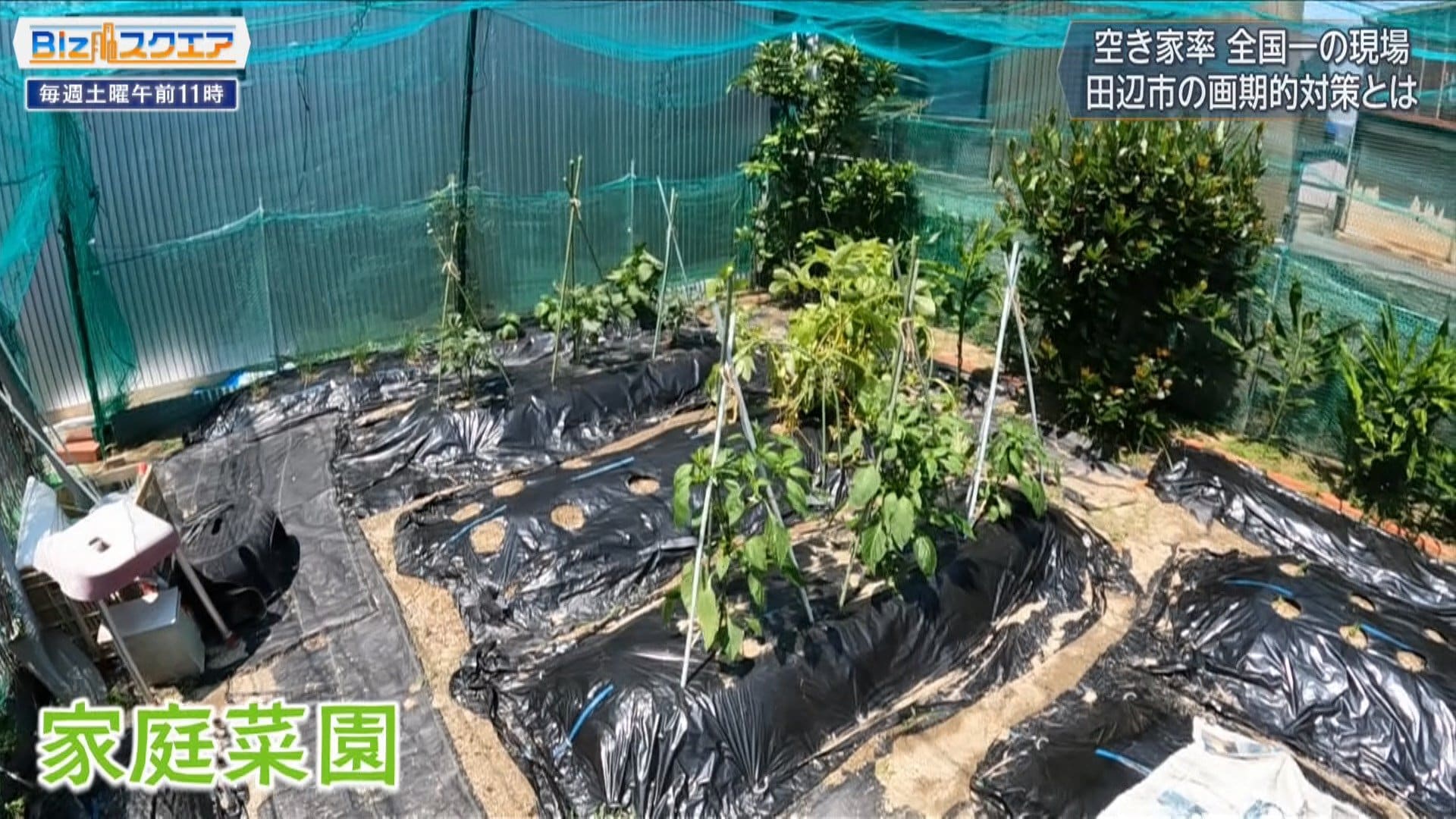 家庭菜園があるこちらのスペースは、元々空き家のあった場所。田辺市では、空き家の隣の住人に解体費と登記にかかる費用程度の金額で土地の取得をあっ旋する制度を2017年7月に開始。この制度を利用した住民は「この辺の一角、狭いので皆さんは車は駐車場を借りているのですが、そういう意味では車置けますし、家庭菜園はできますし、あっ旋してもらって非常に良かった。今も感謝している」。