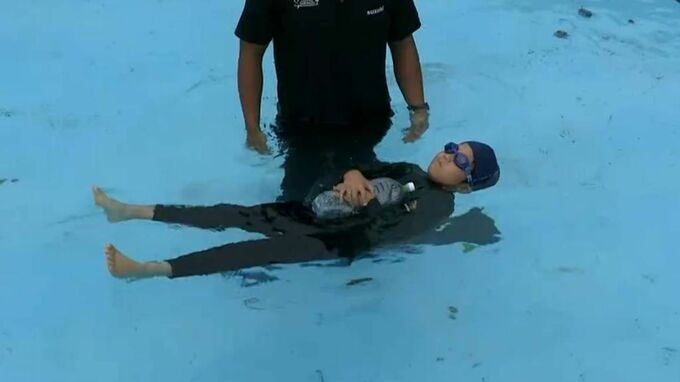 海水浴シーズンを前に、海を安全に楽しむための授業が小学校でありました。全校児童15人の垂水市の新城小学校で開かれたのは、「水辺の安全教室」です。子どもたちは服を着たままプールに入り、溺れた場合は慌てず…