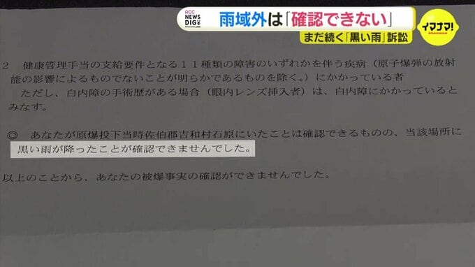 「これらの雨域の外で雨にあった、とされる方については、さらに原爆戦災史など、過去の資料を丁寧に調査しています」「客観的な資料で確認できなければ認定が難しいということです」