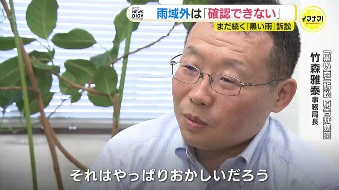 「広島県下全域に広げてちゃんと調査をしていればよかったんだと思うんですけど、残念ながら限定されてるわけなんですね。調査が県下全域ではない」「結局、原告の皆さんにその立証責任と言いますか、どこまで雨が降ったのかということを求めるような感じにはなってるんですけど、それはやっぱりおかしいだろうと思うんです」
