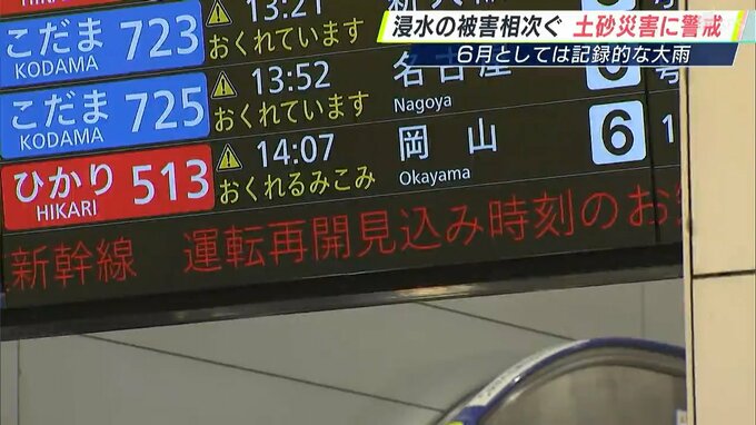 東海道新幹線は降り続いた雨で雨量が規制値に達し、午後から断続的に運転を見合わせました。