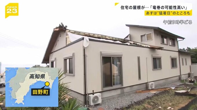 高知県田野町で起きた突風被害について、高知地方気象台は18日夜、竜巻の可能性が高いと発表。けが人はいませんでしたが、住宅7棟と倉庫3棟。さらに、集会所の屋根も剥がれ、ビニールハウスも9棟倒壊しました。