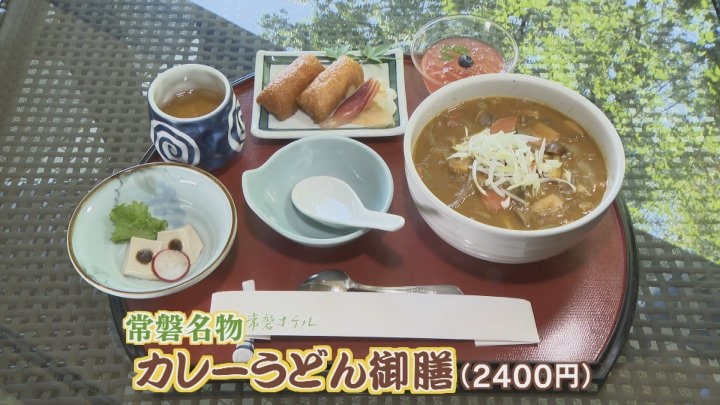 過去唯一、藤井聡太八冠が常磐ホテルで対局を行った2021年に食べたとされる常磐名物カレーうどん御膳です。