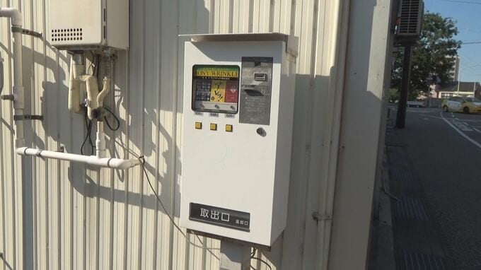 北陸随一の繁華街・金沢市片町から徒歩で10分ほどの距離にある金沢市千日町で、いまなおコンドームの自動販売機を設置し販売しているホンダ薬局。店の建物の壁に沿うような形で自動販売機が置かれています。