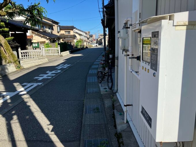 金沢らしい風景ともいえる用水が流れる通りにたたずんでいます。