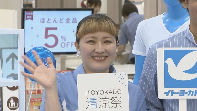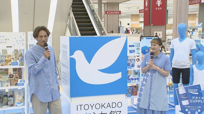 清涼祭の期間中、売り場の「鳩マーク」が青と白のデザインに変更。さらに大森店では、塔屋が「青いヨーカドー」の看板に変更され清涼感を演出します。