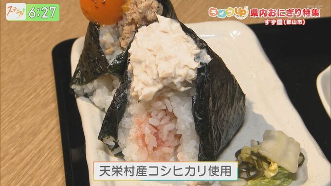 お米は天栄村産のコシヒカリを使用しています。おにぎりはどんな具材の組み合わせを選んでも、1個340円。自分だけのベストコンビを見つけてみては?