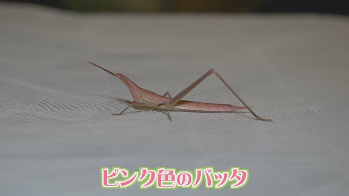 珍しいピンク色をしたバッタが、山梨県内2か所で見つかりました。