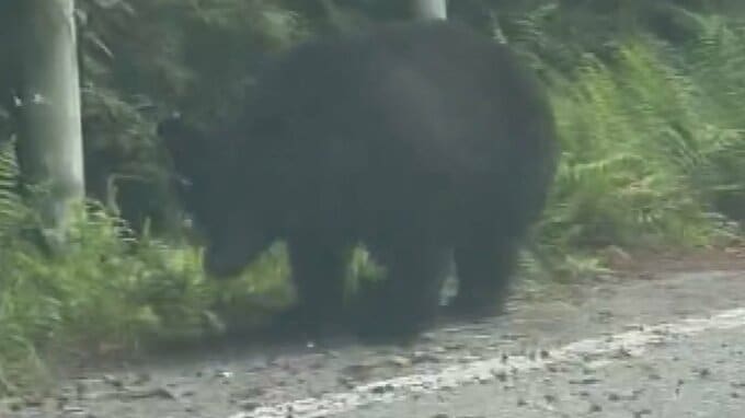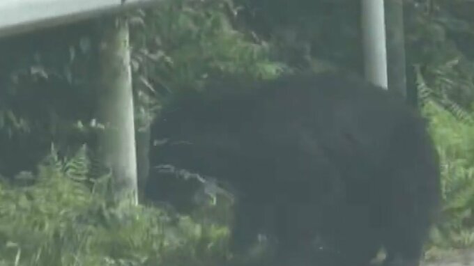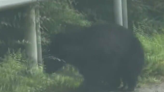 クマが道路わきに 体長1mで車が近づくと… ドライブレコーダーが捉えたその姿 山梨