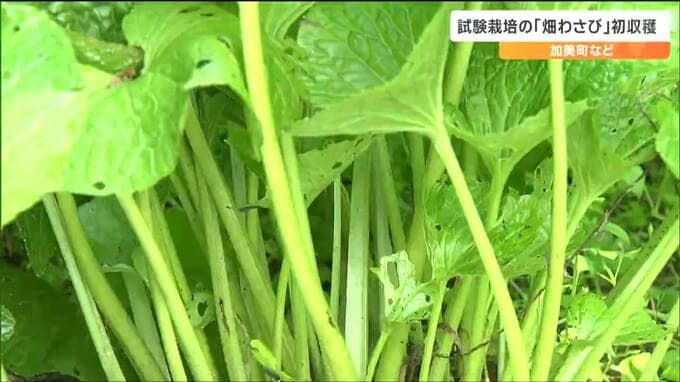 宮城県加美町などの畑で試験栽培されている「畑(はた)わさび」が順調に育ち、19日、初めての収穫作業が行われました。畑わさびは、2022年から大崎市と加美町の5か所で試験栽培されていて、初収穫を迎えました。…