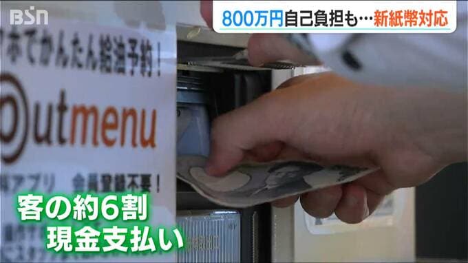 新潟市西蒲区のガソリンスタンドでは、12台ある支払い機を全て新紙幣に対応できるものに変えました。1000万円分は国の補助金を活用しましたが、800万円は自己負担になります。