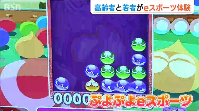 同じ色を4つくっつけて消していく人気ゲームで、子どもから大人まで楽しむことができます。このイベントは若者と交流しながらeスポーツを体験することで、高齢者に新たな生きがいを見つけてもらい、健康長寿につなげていくというものです。