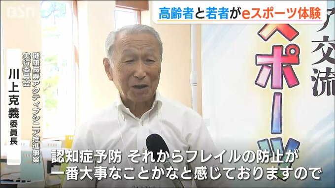 【健康長寿アクティブシニア推進事業実行委員会 川上克義 委員長】「認知症予防、それからフレイルの防止が一番大事なことかなと感じておりますので、(eスポーツ体験会を)どんどん取り入れていきたいなと思っております」
