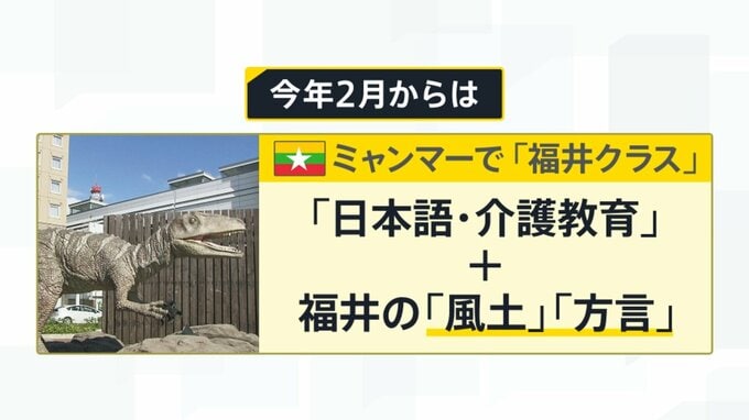 2024年2月からは、ミャンマーで「福井クラス」というものを開講しているということです。現地にいる担当の講師が日本語や介護教育に加え、福井の風土や方言なども深く教えているといいます。