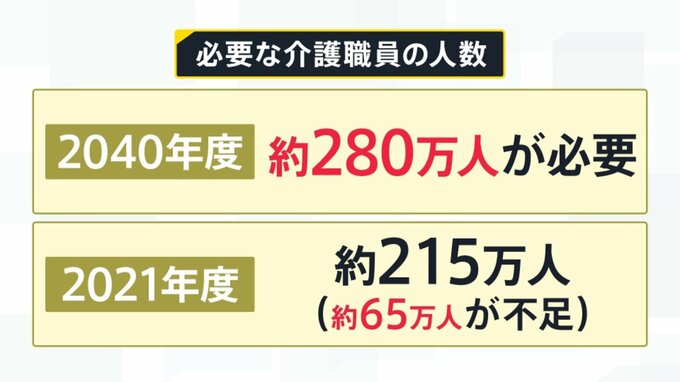 2021年度の介護職員は約215万人で、約65万人足りていないということです。