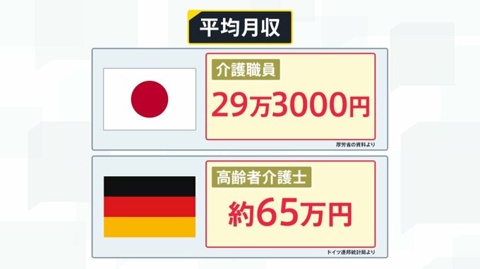 日本の介護職員の平均月収は29万3000円、一方、介護職員の半数を海外人材にたよっているドイツの高齢者介護士の月収は約65万円(日本円換算)だということです。