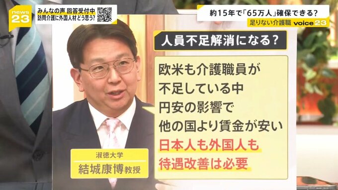 社会福祉学専門の淑徳大学・結城康博教授によると、実は日本だけではなく、「欧米も介護職員が不足している中、円安の影響で他の国よりも賃金が安い。日本人も外国人も待遇改善は必要」だということです。