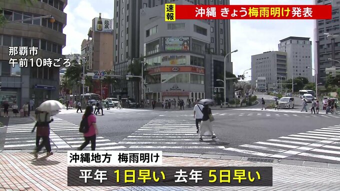 気象庁は先ほど、沖縄地方が「梅雨明けしたとみられる」と発表しました。一方、九州南部では線状降水帯が発生するおそれが高まっています。沖縄では、けさから夏空が広がり、一足はやく夏本番を迎えました。平年並…