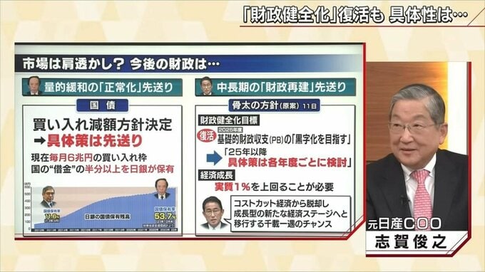 「とにかく借金減らさないと…。一番大きいのは生活に対する将来不安がある。すると消費意を抑えてしまう。せっかく賃金を上げて、インフレを2%にしても消費が伸びなければまたデフレに戻ってしまう。…借金を減らすって政府がしっかりやっていく必要がある」