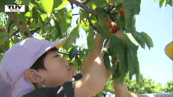 山形県東根市では園児たちにさくらんぼに親しみを持ってもらおうとさくらんぼの収穫体験が行われました。「とれた!」東根市では、園児らに特産のさくらんぼに親しみを持ってもらおうと、毎年この時期に、さくらん…