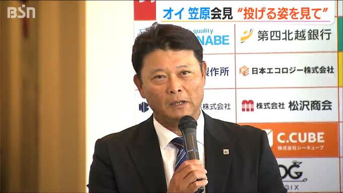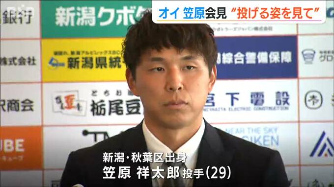 新潟市出身で元DeNAの笠原祥太郎投手がオイシックス新潟アルビレックスBCの入団会見に臨み、地元での活躍を誓いました。