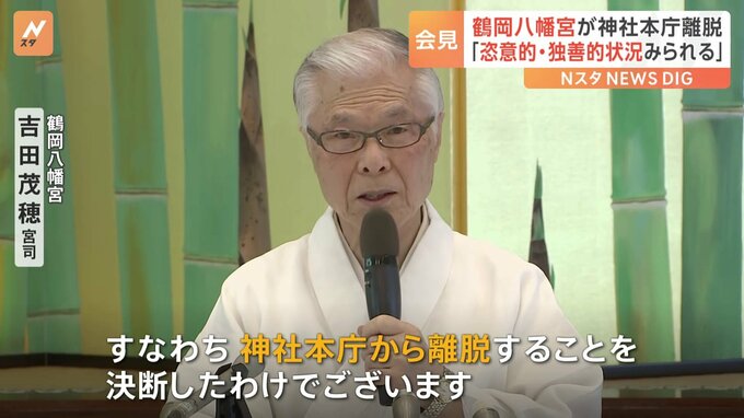 鎌倉幕府を開いた源頼朝ゆかりの神社として知られる「鶴岡八幡宮」。由緒あるこの場所できょう、会見が行われました。鶴岡八幡宮 吉田茂穂宮司「神社本庁との被包括関係を廃止する。すなわち、神社本庁から離脱す…