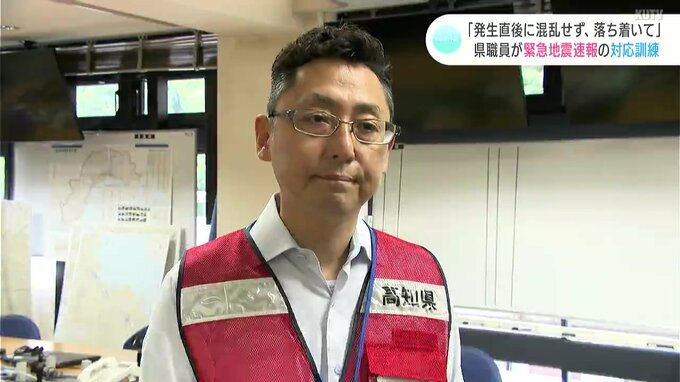 全国で緊急地震速報に対応するための訓練が行われ、高知県庁では職員らが身を守る行動や各市町村からの被害状況の聞き取りなど災害時の対応手順を確認しました。