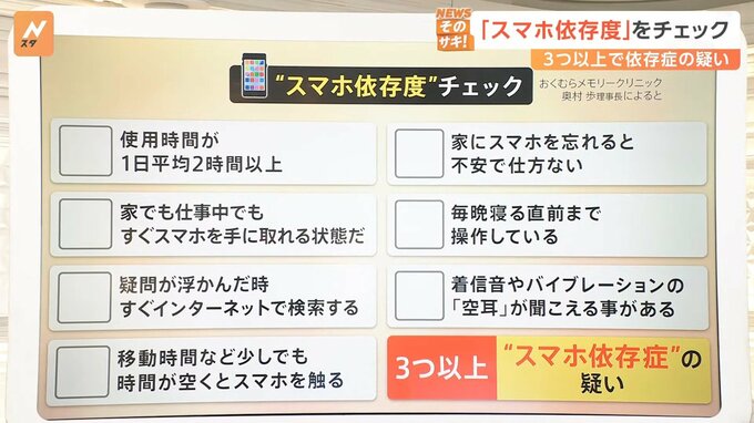 →3つ以上で“スマホ依存症”の疑い