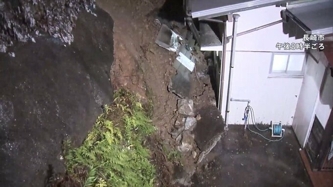 長崎市内では民家の裏の崖が高さ約10メートル、幅約10メートルにわたって崩れました。