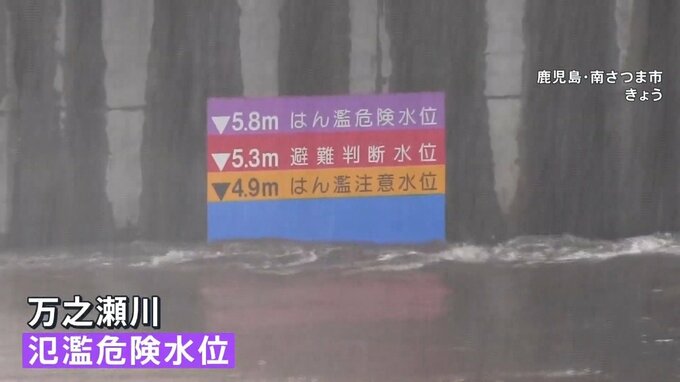 南さつま市でも1時間に51ミリの非常に激しい雨が降り、市内を流れる万之瀬川は「氾濫危険水位」に達しました。